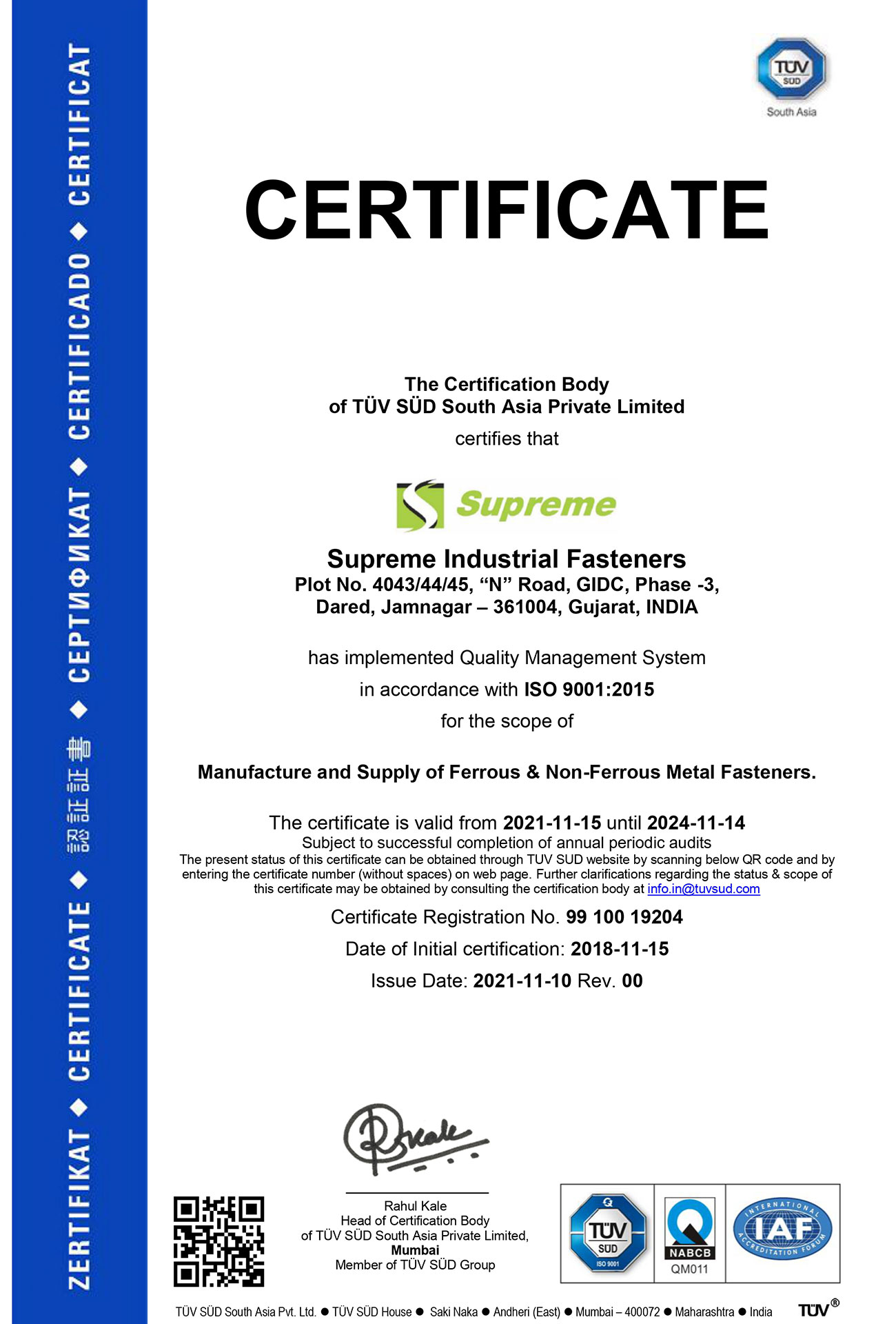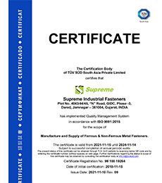 Quality is of a paramount importance at Supreme Industrial Fasteners. We have invested hugely in Quality Control Lab and Optical Sorting Machines to continually monitor its KPIs on parts-per-million. Supreme is an ISO 9001:2015 Certified Company, which facilitates all its products to be fully traceable all the way back to the raw material. The Highly qualified QC Team Engineers maintains the quality standards on each step.